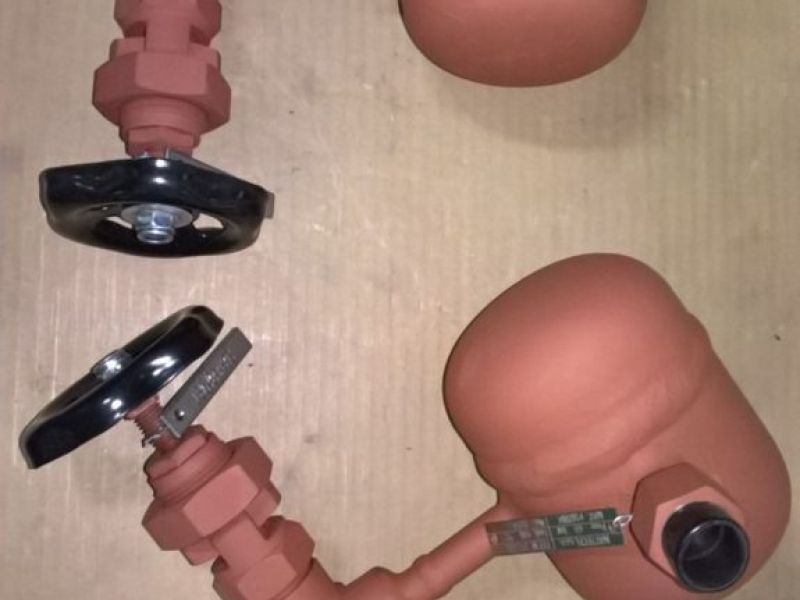 Těleso kondenzační nádoby je vyrobeno z uhlíkových ocelí P245GH/P250GH/P265GH, uzavírací armatura z uhlíkové oceli A105 (P250GH). Na vyžádání lze kondenzační nádobu vybavit uzavírací armaturou z jiného materiálu.