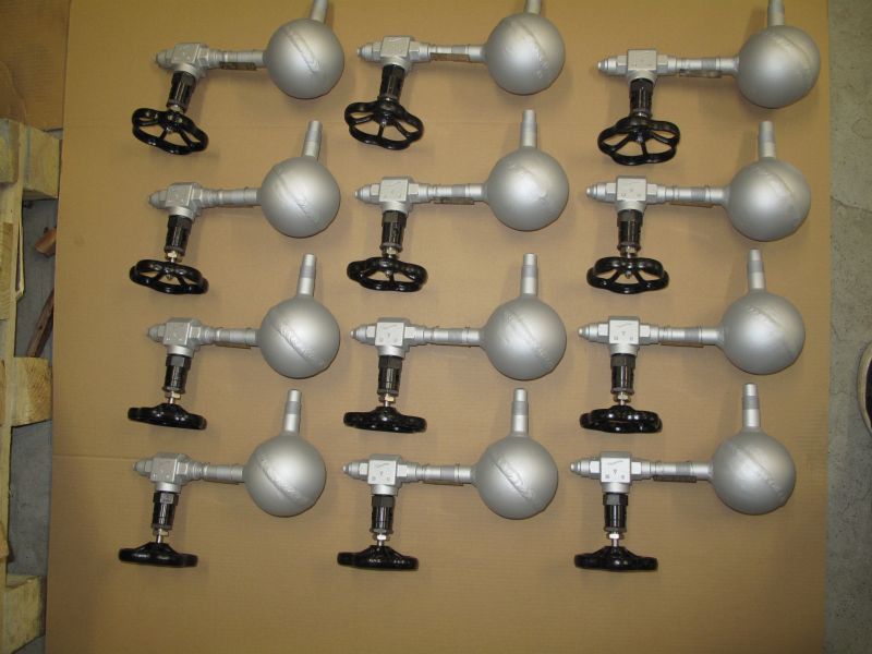 Těleso kondenzační nádoby i uzavírací armatura jsou vyrobeny ze žáropevné legované oceli 15 128 (14MoV6-3). Na vyžádání lze kondenzační nádobu vybavit uzavírací armaturou s jiným procesním připojením nebo s jinými pracovními parametry.