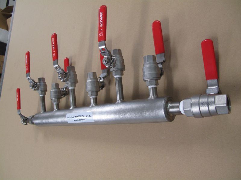 Die Gasverteiler werden zur Gasverleitung in einzelne Zweige der Rohleitungen angewendet. Die Absperrventile an einzelnen Zweigen des Gasverteilers liefern sichere Betätigung und Abschluss der Gasleitungen in gegebenen Arbeitsbedingungen. Die Gasverteiler können für alle Gastyps zu gegebenen Betriebsbedingungen und Temperaturen benutzt werden. Meistens werden aber die Luftverteiler angewendet.